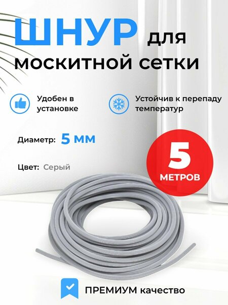Шнур для москитной сетки - это необходимый элемент, предназначенный для закатки полотна сетки в раму окна. Он обеспечивает надежное и прочное крепление москитной сетки. Наш шнур для москитной сетки изготовлен из качественных материалов, которые обладают высокой прочностью и износостойкостью. Это позволяет использовать шнур на длительный период времени без потери его свойств и качества. Шнур для москитной сетки прост в использовании и легок в установке. Он имеет оптимальную жесткость и гибкость, что позволяет легко и точно закрепить сетку в раме. Наши шнуры для москитной сетки предназначены для использования на любых видах окон, имеют универсальный размер и могут быть использованы на москитных сетках любого типа. Если вы ищете надежный и простой способ закрепления москитной сетки в оконной раме, то шнур для москитной сетки - это именно то, что вам нужно. Купите наш шнур прямо сейчас и наслаждайтесь свежим воздухом, не беспокоясь о насекомых в вашем доме! Комплектация Шнур крепежный серый 5 мм - 5 метров