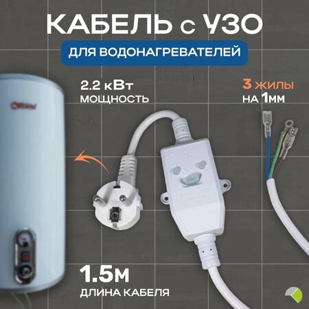 Шнур кабель с УЗО для водонагревателя бойлера 16А 10мА 1,5 метра ПВС 3х1 3,1 кВт - это надежный аксессуар, который обеспечивает безопасность при использовании водонагревателя. Он предназначен для защиты от поражения электрическим током и является важной частью любого водонагревателя. Шнур с УЗО имеет контакты под разъем, что обеспечивает удобство подключения к водонагревателю. Этот кабель электрический с УЗО подходит для водонагревателей ЭВНА, TERMEX и других известных брендов, таких как Thermex, Electrolux, Polaris, Zanussi и Timberk. Шнур кабель с УЗО обладает максимальной силой тока 16А и максимальной мощностью ТЭН бака 2,2кВт. Длина кабеля составляет 1,5 метра, а сечение провода - 3 жилы на 1мм. Максимальный ток утечки составляет 30мА. В комплект входят вилка с заземлением, УЗО, кабель и клеммники. Вес набора составляет 230 гр, а длина - 1500 мм. Выбирая шнур кабель с УЗО для водонагревателя бойлера 16А 10мА 1,5м 3х1,0, вы получаете надежный аксессуар, который обеспечит безопасность и комфорт при использовании водонагревателя.