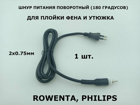 Шнур питания поворотный для плойки, фена и утюжка (180 градусов), 2x0,75мм, 1,6м - 1 шт.