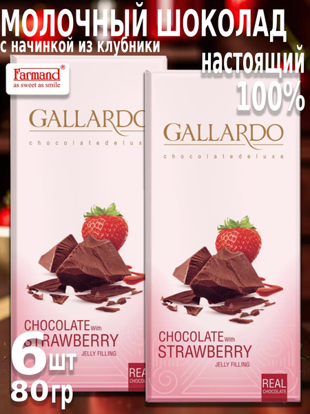 Натуральный молочный плиточный шоколад из Ирана - идеальный выбор для любителей качественных еды и сладостей. Произведен из какао-бобов высокого качества. Набор из настоящего шоколада с оригинальной ягодной мягкой начинкой из клубники предлагает уникальный вкус и сочетание различных текстур. Вкусный полезный клубничный шоколад тает во рту, оставляя после себя приятное послевкусие. Эти вкусняшки с ягодами созданы из лучших ингредиентов и дарят радость с каждым кусочком. Каждая плитка шоколада от Фарманд - прекрасное дополнение к чаю и кофе. Упаковка шоколадок из 6 шт по 80 гр. Этот импортный иранский десерт создан специально для тех, кто ищет что-то особенное и готов поделиться этим удовольствием с близкими. Шоколадный набор весом 480 гр от Галлардо - красивый необычный подарок для любого праздника или случая. Интересный комплимент для любимых мамы и бабушки, родственников и коллег. Подарочный вариант детям и взрослым, женщинам и мужчинам.