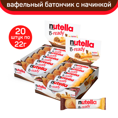 Вафельный батончик B-Ready, с начинкой из пасты Nutella с добавлением какао, 20 шт по 22 г