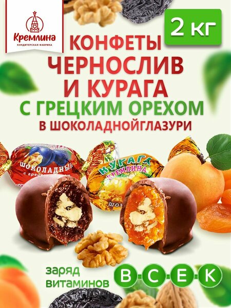 Конфеты «Чернослив и Курага с грецким орехом в шоколаде» — это не только вкусное, но и полезное лакомство. Привезенный нами чернослив из Аргентины содержит большое количество витаминов и минералов. В древности чернослив считался известным средством от стресса и депрессии. А сегодня сухофрукты из чернослива являются самым мощным антиоксидантом. Чернослив содержит витамины: К, E, B6, B5 и минералы: калий, медь, магний, железо, марганец, которые положительно влияют на ЖКТ, сердечно-сосудистую и эндокринную систему, опорно-двигательный аппарат. Курага из Турции — это ценный источник витаминов и минералов, таких как витамин А, витамин С, калий и железо. Употребление кураги способствует укреплению иммунитета, улучшению работы сердечно-сосудистой системы и нормализации пищеварения. А также курага помогает поддерживать здоровье кожи и глаз благодаря высокому содержанию антиоксидантов. Грецкий орех содержит множество полезных веществ, включая витамины (например, Е и группы B), минералы (такие как цинк, магний, йод) и омега-3 жирные кислоты. Употребление грецких орехов способствует укреплению иммунитета, улучшению работы мозга, нормализации обмена веществ и поддержанию здоровья сердечно-сосудистой системы. Кроме того, грецкие орехи могут оказывать положительное влияние на состояние кожи и волос. Упаковка конфет весом 2 кг — это идеальное решение для семейных покупателей, которые ценят не только вкус, но и практичность. Большая упаковка позволит вам всегда иметь под рукой любимое угощение для всей семьи. Не нужно переживать, что сладости закончатся в самый неподходящий момент — теперь у вас будет достаточно конфет для домашнего чаепития, для радости детей после школы и для угощения гостей на празднике. Такая упаковка — это не только удобство, но и экономия. Каждая конфета в упаковке — это настоящий праздник для вашего вкуса и гарантированное удовольствие для детей. Упаковка 2 кг — это возможность создавать приятные семейные моменты каждый день, добавляя немного сладости в повседневную жизнь и радуя близких. Закончите ваш день на сладкой ноте с нашими шоколадными конфетами, которые подарят вам незабываемый вкус и радость. Каждая коробка, будь то подарочные конфеты или весовые шоколадные драже, наполнена натуральными ингредиентами и без добавления сахара. Наши конфеты из сухофруктов в шоколаде — идеальный выбор для любителей полезных сладостей, которые не хотят отказываться от удовольствия. Удивите близких коробкой конфет 1 кг или создайте оригинальный букет из конфет, который станет отличным подарком. Любой получатель скажет мерси за такой подарочный продуктовый набор конфет. Для тех, кто ценит разнообразие, мы предлагаем конфеты шоколадные в коробке, жевательные конфеты, марципан и даже малину в шоколаде - это победа вкуса в каждой конфете. Позвольте себе насладиться лучшими продуктами питания и вкусняшками в каждой упаковке.