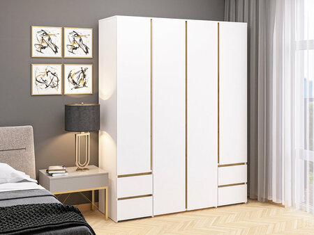 Шкаф распашной четырёхдверный с 4-мя ящиками «ШОН-24»; ВхШхГ: 2070х1600х520мм. Конструкция включает в себя: 9 вместительных полок, 4 выдвижных ящика. Изделие МФ «Пирамида» выполнено из высококачественного, износостойкого и экологичного материала – ЛДСП класса Е1, толщиной 16мм. Края обработаны ударопрочной кромкой ПВХ, что значительно увеличивает срок эксплуатации изделия. Для сборки используется фурнитура от ведущих мировых производителей. Все изделия фабрики сертифицированы и абсолютно безопасны для здоровья.