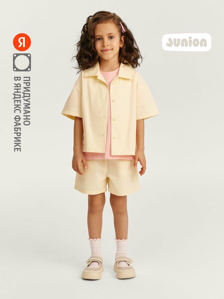 Junion Wear — это бренд одежды для детей, придуманный в Яндексе настоящими родителями. Шорты Junion Wear подходят для мальчиков и девочек от 1,5 до 6 лет. Сделаны из хлопка плотностью 140 г/м²: гладкая и приятная на ощупь ткань хорошо пропускает воздух и не просвечивает. За таким материалом просто ухаживать — он устойчив к износу сохраняет форму после стирок и не теряет цвет. Шорты прямого кроя не стесняют движений и не отвлекают от активностей. Мягкая эластичная резинка надёжно держится на поясе. По бокам есть карманы. Благодаря универсальному оттенку шорты легко сочетаются с разной одеждой — как базовой, так и выразительной. Дополнить комплект можно лёгкой рубашкой с коротким рукавом из коллекции Junion Wear.