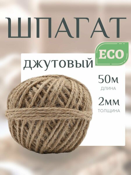 Джутовый шпагат толщиной 2 мм позволяет завязать тугой и устойчивый узел. Таким шпагатом можно перевязать посылку или коробку с подарком. Подходит для оформления букетов или цветочных корзин. Небеленый шнур эффектно смотрится в сочетании с крафтовой бумагой. Отличный выбор для эко-поделок, например абажуров в технике макраме или ковриков. Шпагат изготовлен из джутового волокна, которое ценят за ряд качеств: – Прочность, устойчивость к трению и разрыву. – Джут выдерживает капризы погоды, хорошо впитывает влагу и при этом не подвержен гниению. – Экологически чистое сырье: джутовые стебли растут быстро без больших объемов удобрений или пестицидов. – Изделия из этого волокна легко утилизировать, например, через компостирование. Цвет: натуральный бежевый. Длина в клубке – 50 м, толщина 2 мм.