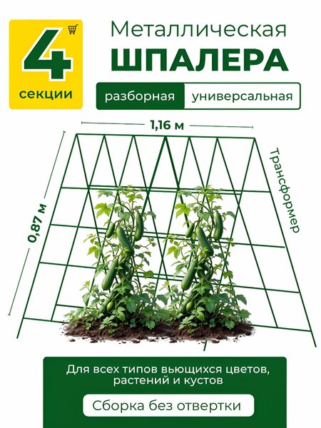 Шпалера для огурцов — это не только практичное, но и эстетически привлекательное решение для вашего сада. Опора для растений садовых помогает поддерживать порядок и организованность, создавая идеальные условия для роста растений. Выбор прочного и качественного материала гарантирует, что шпалера прослужит вам долго, подвергаясь воздействию солнечных лучей, дождя и снега. Опора для растений позволяет садоводу максимально эффективно использовать пространство. С помощью шпалеры растения не только поднимаются выше, но и получают больше солнечного света, что положительно сказывается на их развитии и урожайности. Вьющиеся растения, такие как горох и цветы, будут радовать вас обилием цветения и плодоношения, а специализированные крепления обеспечить их надежную фиксацию. Кроме того, опора для огурцов помогает предотвратить контакт плодов с землей, что снижает риск заражения бактериями и грибками, и, в конечном итоге, улучшает качество урожая. Вы сможете не только наслаждаться красивыми и здоровыми растениями, но и значительно упростить уход за ними. Шпалера для винограда — это универсальный инструмент, который преобразит ваш сад, придаст ему аккуратный вид и облегчит труд в огороде. Эта шпалера для малины представляет собой идеальное решение для каждого садовода, стремящегося улучшить свои зеленые насаждения. Опоры для садовых растений не только выполняют практическую функцию поддержки растений, но и добавляют эстетическую изюминку вашему саду. Благодаря своей надежности и устойчивости даже в сложных погодных условиях, шпалера садовая обеспечивает необходимую поддержку вашим растениям, что значительно облегчает уход за ними. Шпалера садовая металлическая поможет сосредоточиться на росте и развитии ваших зеленых питомцев, не переживая о возможных повреждениях. Наша опора для клематиса поможет вам создать ухоженный и красивый сад, который будет радовать глаз и приносить плоды на протяжении многих сезонов. Позвольте вашим растениям развиваться в комфортной среде: выбирайте нашу шпалеру для вьющихся и осуществляйте свои садовые мечты! Мы уверены, что качество и надежность наших продуктов станут залогом вашего успеха в садоводстве.