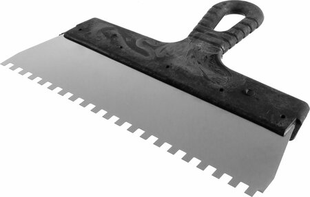 Фасадный шпатель Вихрь 250мм предназначен для нанесения и выравнивания разнообразных строительных и отделочных растворов и смесей. Благодаря полотну из нержавеющей стали, инструмент не подвержен коррозии и прослужит длительное время. Рукоятка из полипропилена имеет удобную форму и обеспечивает надежный захват инструмента и комфортную работу с ним. Отверстие на рукоятке позволяет хранить инструмент в подвешенном состоянии. Зубцы по нижнему краю шпателя позволяют применять инструмент для работы с вязкими материалами и экономичней расходовать раствор.