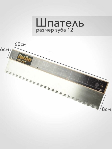 А это наш народный Шпатель, основной инструмент для нанесения клея на пол или на плитку также и на стену по вашему усмотрению. Выполнен из нержавеющей стали, толщиной 1 мм. Ручка выполнена из влагостойкой высокопрочной фанеры округлённые полированные края, крепление ручки скреплено натяжителями, что позволит прослужить вам долговечно. Зуб 12 мм. Все параметры указаны на фото. Копирование товара Контролируется PATENT.