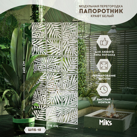 ШПБ-18-ДКБ Папоротник Ширма-перегородка подвесная модульная MiKs для зонирования комнаты, салона красоты, офиса, кафе, дома, гостиной и детской, интерьерная