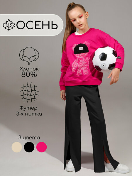 Штаны детские с разрезами Amarobaby изготовлены из натурального хлопка - футер 3-х нитка без начеса, приятной на ощупь ткани. Широкие штаны для девочки прекрасно сидят на теле ребенка, не сковывая движений. Свободные штаны на весну хорошо подходит для повседневной носки, прогулок, активного отдыха, похода в гости, на фотосессию. Стильные штаны для детей Amarobaby не оставят равнодушным не одну девочку. Штаны для девочки - это незаменимый элемент гардероба, который сделает образ вашего ребенка стильным, модным и уникальным. Брюки палаццо - самый главный тренд этого сезона. Модные брюки расклешенные от бедра понравятся любой девочке. Их отлично можно сочетать с худи, свитшотами, спортивными куртками и другими элементами гардероба. Штаны на резинке детские прекрасный вариант для спорта или танцев.