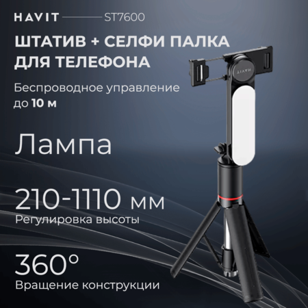 Штатив для телефона Havit ST7600, селфи палка с лампой и пультом управления