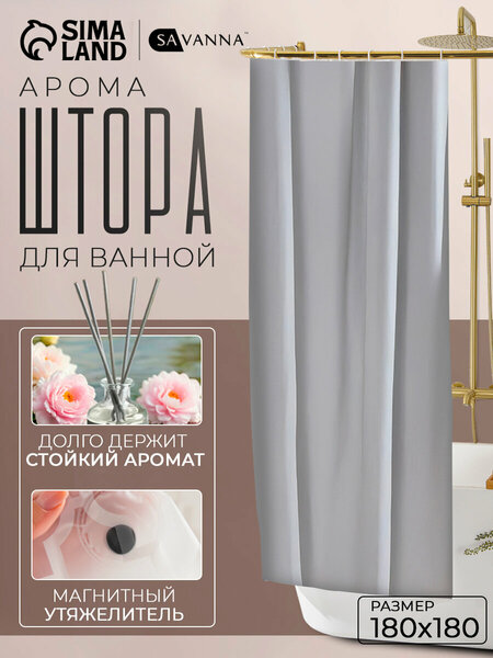 Штора для ванной комнаты «Классика», с люверсами, с утяжелителями, PEVA ароматизированная, 180×180 см, серая