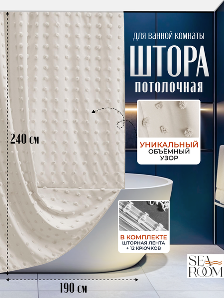 Штора для ванной тканевая непромокаемая потолочная 240х190 см SeaRoom