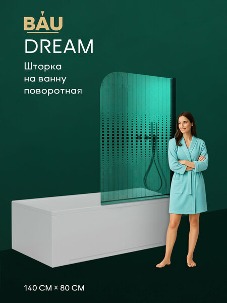 Шторка на ванну BAU Dream поворотная 140x85, прозрачное закаленное стекло с чёрной мозаикой 6 мм, черный матовый профиль — практичное, лаконичное и пока не для всех привычное решение для ванной комнаты . Задача этого вида шторок такая же, как и у текстильных штор — защищать ванную комнату от брызг. Стеклянные шторки, как правило, закрепляются с помощью металлического профиля . Это оптимальное решение, которое обеспечивает стабильность конструкции. Профиль в свою очередь крепится к стене саморезами. Стекло требует внимания сточки зрения ухода, с другой стороны — известковый налёт от воды на нём почти не образуется. Современные модели имеют водоотталкивающее покрытие, что облегчает уборку. Современные средства ухода за душевыми кабинами помогают за короткое время добиться чистоты и блеска. Кроме того, у всех под рукой всегда есть проверенное и безотказное средство – мыльная вода. Главное — ввести это в привычку и делать регулярно. Подходят для ванн RGW, Aquanet, Aquatek, Jacob Delafon, Универсал, Lavinia Boho, STWORKI, ВИЗ и многих других акриловых, стальных и чугунных ванн. • Габариты, см: 140х85 • Петли: подъемная цилиндрическая петля • Конструкция дверей: распашная наружу и во внутрь • Толщина полотна двери, мм: 6 • Монтаж: к стене на ванну