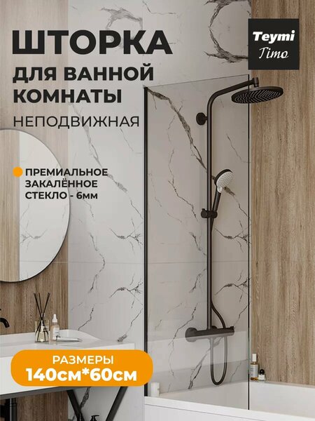Наименование изделия: Шторка на ванну Teymi Timo 60х140, прозрачное закаленное стекло, профиль черный матовый; -- Артикул производителя: T00271; -- Коллекция: Timo; -- Ширина: 60 см; -- Высота: 140 см; -- Тип изделия: душевая шторка неподвижная; -- Установка: на борт ванны слева / справа; -- Конструкция: стационарная; -- Открывание: не предусмотрено; -- Антикапля / Стекло с водоотталкивающим защитным покрытием: да; -- Цвет стекла: прозрачное; -- Цвет профиля: черный матовый; -- Материал профиля: алюминий; -- Толщина стекла: 6 мм; -- Тип стекла: закалённое травмобезопасное стекло; -- Полный монтажный комплект крепежа в наличии: да; -- Подробная схема сборки в наличии: да; -- Страна происхождения бренда: Финляндия; -- Страна производства: Китай. Душевая штора на ванну Teymi Timo T00271 изготовлена из травмобезопасного закаленного стекла толщиной 6 мм с водоотталкивающим защитным покрытием "антикапля". Изделие имеет 100% защиту от коррозии что гарантирует максимально длительный срок его эксплуатации. Шторка на ванну Teymi Timo T00271 имеет прозрачное стекло, профиль, окрашенный в черный матовый цвет, изготовленный из алюминия. Размеры изделия 60 х 140 см. П-образный профиль устанавливается вертикально и с помощью саморезов крепится на стену. В профиль вставляется стекло. Нижняя горизонтальная сторона стекла устанавливается на борт ванны и укрепляется силиконовым герметиком, что придаёт вашей шторке лёгкость и эстетичный внешний вид. Комплектация: - Стекло закаленное 600х1400 мм толщиной 6 мм. - Профиль алюминиевый. - Уплотнитель силиконовый. - Комплект для крепежа (саморезы, дюбеля). - Паспорт изделия.
