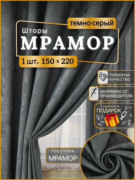 Шторы для комнаты Мрамор 150*220 темно-серый. Шторы в гостинную