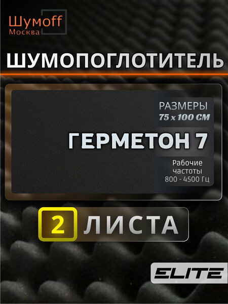 Шумоизоляция автомобиля Шумофф Герметон 7 - 2 листа 75х100 см виброизоляция для авто звукоизоляция машины звукоизоляционный материал