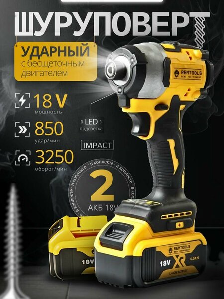 Шуруповерт Remtools DCF850 18V - надежный помощник в домашних и строительных работах. Этот аккумуляторный инструмент обладает всем необходимым функционалом для эффективного и комфортного использования. Набор включает в себя шуруповерт Remtools DCF850 18V, который оснащен мощным 18-вольтным аккумулятором и имеет высокую мощность вращения - 200 Нм. Благодаря этому, вы сможете легко и быстро завинчивать шурупы и выполнять другие строительные работы нашим импакт шуруповертом. Шуруповерт Remtools DCF850 18V поставляется с двумя аккумуляторами, что позволяет продолжать работу без прерываний. Каждый аккумулятор обладает емкостью 2 АКБ, что гарантирует длительное время автономной работы. Этот импакт аккумуляторный отличается высоким качеством и надежностью. Импульсный винтоверт оснащен электрическим двигателем с бесщеточной технологией, что обеспечивает его долговечность и мощность. Благодаря ударному механизму, вы сможете легко просверлить отверстия в твердых материалах. Шуруповерт Remtools DCF850 18V имеет компактный размер и легкий вес, что облегчает его переноску и использование в труднодоступных местах. В комплекте также идет удобный кейс для хранения и переноски. Этот аккумуляторный шуруповерт подходит для различных задач - от монтажных работ до ремонта автомобиля. Он идеально подходит как для профессиональных строителей, так и для домашнего использования. Шуруповерт Remtools DCF850 18V - надежный и функциональный инструмент, который поможет вам справиться с любыми строительными задачами. Комплектация: Ипмакт шуруповерт - 1 шт, АКБ 6А - 2 шт, Зарядное устройство - 1 шт, кейс TSTAK - 1 шт.
