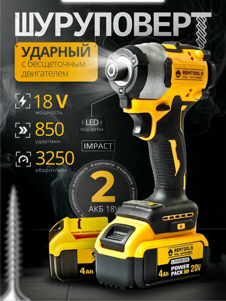 Шуруповерт Remtools DCF850 18V - надежный помощник в домашних и строительных работах. Этот аккумуляторный инструмент обладает всем необходимым функционалом для эффективного и комфортного использования. Набор включает в себя шуруповерт Remtools DCF850 18V, который оснащен мощным 18-вольтным аккумулятором и имеет высокую мощность вращения - 200 Нм. Благодаря этому, вы сможете легко и быстро завинчивать шурупы и выполнять другие строительные работы нашим импакт шуруповертом. Шуруповерт Remtools DCF850 18V поставляется с двумя аккумуляторами, что позволяет продолжать работу без прерываний. Каждый аккумулятор обладает емкостью 2 АКБ, что гарантирует длительное время автономной работы. Этот импакт аккумуляторный отличается высоким качеством и надежностью. Импульсный винтоверт оснащен электрическим двигателем с бесщеточной технологией, что обеспечивает его долговечность и мощность. Благодаря ударному механизму, вы сможете легко просверлить отверстия в твердых материалах. Шуруповерт Remtools DCF850 18V имеет компактный размер и легкий вес, что облегчает его переноску и использование в труднодоступных местах. В комплекте также идет удобный кейс для хранения и переноски. Этот аккумуляторный шуруповерт подходит для различных задач - от монтажных работ до ремонта автомобиля. Он идеально подходит как для профессиональных строителей, так и для домашнего использования. Шуруповерт Remtools DCF850 18V - надежный и функциональный инструмент, который поможет вам справиться с любыми строительными задачами.