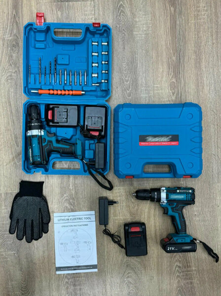 - Шуруповерт - Аккумуляторный - 21V - Кейсовый - Два аккумулятора - Мощность - Компактный - Эргономичный - Регулировка оборотов - Крутящий момент - Быстрозажимный патрон - Зарядное устройство - Долговечность - Инструмент для дома - Ремонт - Строительство - Аксессуары - Мобильность - Удобство хранения - Профессиональное использование - DIY (сделай сам)