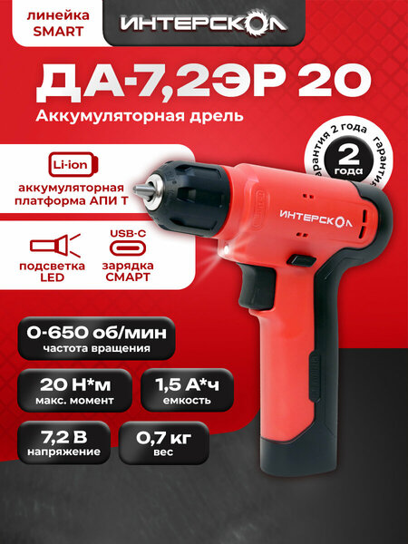 Шуруповерт Интерскол Smart ДА-7,2 ЭР — надежный и удобный инструмент для выполнения домашних дел. С его помощью легко справиться с задачами, связанными с сборкой мебели, ремонтом или мелкими проектами по дому. Заряжается от Type-C: Возможность заряжаться от стандартного кабеля Type-C делает использование инструмента невероятно удобным. Необходимо всего лишь подключить его к мобильному адаптеру, и можно приступать к работе! Мощный и надежный: Максимальный крутящий момент в 20 Нм обеспечивает отличные результаты при работе с различными материалами, включая металл. Шуруповерт без труда справляется с самыми сложными задачами. Долговечный аккумулятор: Аккумулятор с напряжением 7.2 В и емкостью 1.5 Ач гарантирует долгую и эффективную работу, минимизируя необходимость в частых подзарядках. Универсальность применения: Шуруповерт идеально подходит как для профессионалов, так и для домашних мастеров. Он станет верным помощником для сборки мебели, крепления полок и реализации интересных DIY-проектов.