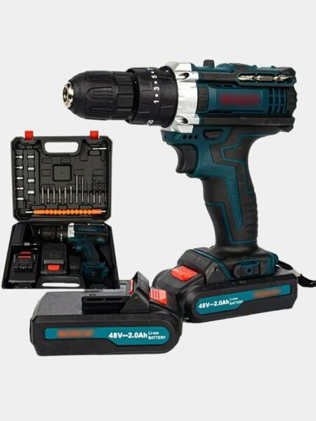 Размеры Состав Инструкция Легкий вес (2 кг) и эргономичная прорезиненная ручка обеспечивают комфортное использование даже при длительных работах. Фонарик с точечной подсветкой позволяет эффективно работать в условиях слабого освещения. Функция реверса облегчает откручивание крепежей и переключение направления вращения. Ударный аккумуляторный шуруповерт легко справляется с задачами сверления и закручивания крепежей на деревянных и металлических поверхностях. Две скорости (высокая и низкая) позволяют выбрать оптимальный режим для каждой работы. 18 уровней крутящего момента обеспечивают точную настройку для разных материалов и задач. Быстрозажимной патрон 3/8 дюйма подходит для различных насадок, делая инструмент универсальным. Комплект включает 2 аккумулятора и зарядное устройство, что гарантирует бесперебойную работу без необходимости часто заряжать инструмент. Время зарядки всего 1 час — инструмент всегда готов к работе. Количество скоростей: 2 Шуруповерт, набор 24 предметов, ударный, с аккумулятором — дрель аккумуляторнаяИдеальный помощник для строительных и слесарно-монтажных работ — шуруповерт с аккумулятором. Этот ударный шуруповерт обеспечивает высокое качество и удобство в использовании, что делает его незаменимым для профессиональных мастеров и домашних пользователей. Основные преимущества и свойства: Ударный аккумуляторный шуруповерт легко справляется с задачами сверления и закручивания крепежей на деревянных и металлических поверхностях. Две скорости (высокая и низкая) позволяют выбрать оптимальный режим для каждой работы.18 уровней крутящего момента обеспечивают точную настройку для разных материалов и задач. Быстрозажимной патрон 3/8 дюйма подходит для различных насадок, делая инструмент универсальным. Легкий вес (2 кг) и эргономичная прорезиненная ручка обеспечивают комфортное использование даже при длительных работах. Фонарик с точечной подсветкой позволяет эффективно работать в условиях слабого освещения. Функция реверса облегчает откручивание крепежей и переключение направления вращения. Комплект включает 2 аккумулятора и зарядное устройство, что гарантирует бесперебойную работу без необходимости часто заряжать инструмент. Время зарядки всего 1 час — инструмент всегда готов к работе. Технические характеристики: Тип инструмента: дрель-шуруповертТип патрона: быстрозажимнойКоличество скоростей: 2Диаметр патрона: 10 ммМаксимальные обороты: до 2350 об/минКрутящий момент: 25 НмМощность: 36 ВтЕмкость аккумулятора: 2500 мАчНапряжение аккумулятора: 36 ВТип аккумулятора: Li-IonВремя зарядки: 1 часКомплектация: Кейс для храненияУгловая насадкаДержатель битСверлильный патронДва аккумулятораОграничитель глубины сверленияНабор сверлНасадка-миксерСменные головкиБитаЭтот шуруповерт с ударным механизмом станет вашим надежным помощником для любых задач — от мелкого ремонта до масштабных проектов. Простота в использовании, легкость и многофункциональность делают его незаменимым инструментом для каждого.