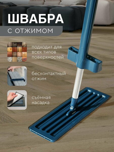 Достоинства:Простая, Легкая, удобная в использовании Недостатки:Не обнаружено, если только сделать механизм отжима по сильнее Комментарий:Хорошо собирает пыль и весь мелкий мусор. Проходит под кроватью и тумбами с низким наклоном. Тряпка хорошая. Можно использовать без ведра.