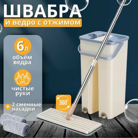 Швабра с отжимом для пола - инновационное решение для уборки, вашего дома! Швабра отжимается в специальном отжиме на ведре до оптимальной влажности. Насадка из комбинированной микрофибры отмывает любые пятна, без использования бытовой химии и удаляет более 99% бактерий только с помощью воды. Швабра с отжимом и ведром сама очищается и выжимает лишнюю воду без необходимости физического касания, так что вам больше не придется мочить свои руки. Процедура вертикальной сушки данного уборочного инвентаря исключает образование бактерий, насадки будут всегда свежими и готовыми к уборке. Ткань очищает грязь, пыль и прочий мусор с любых твердых поверхностей, таких как мрамор, плитка, ламинат, виниловые и деревянные полы. Двухкамерная система для влажной уборки с отжимом и полосканием поможет сократить время уборки в 2 - 3 раза. А красивый дизайн и компактность приятно удивят Вас. Объем воды 6 л В комплекте есть насадки.