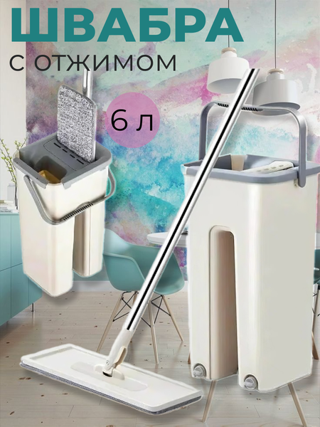 Швабра с отжимом Данная автоматически отжимаемая швабра будет эффективна для быстрой и легкой уборки вашего дома. Благодаря инновационному дизайну, швабра сама очищается и выжимает лишнюю воду без необходимости физического касания, так что вам больше не придется мочить свои руки. Процедура вертикальной сушки предотвращает образование бактерий, насадки будут всегда свежими и готовыми к уборке. Ткань очищает грязь, пыль и прочий мусор с любых твердых поверхностей, таких как мрамор, плитка, ламинат, виниловые и деревянные полы. Сама насадка выполнена из махровой ткани, которая впитывает в 3 раза больше обычной, и её легко можно постирать в стиральной машинке. Ведро состоит из 2 отсеков:-отсек для промывания насадки от грязи и пыли, и даже снятия волос. Так как в этом отсеке есть не только приспособление для отжима, но и плотная, жёсткая щётка, которая снимет все волосы и дополнительно промоет швабру от грязи.-отсек для отжима лишней влаги. Вы отожмете тряпку практически досуха. И можете попрощаться с разводами на полах или мокрыми пятнами. Характеристики Размер насадки: 33 х 12 х 0,6 см Длина ручки: 125 см Размер ведра: 19,5 x 17 x 36 см Объем ведра: 6 л Упаковка: картонная коробка 37,5 х 19,2 х 22 см. Материал: пластик, металл, микрофибра.