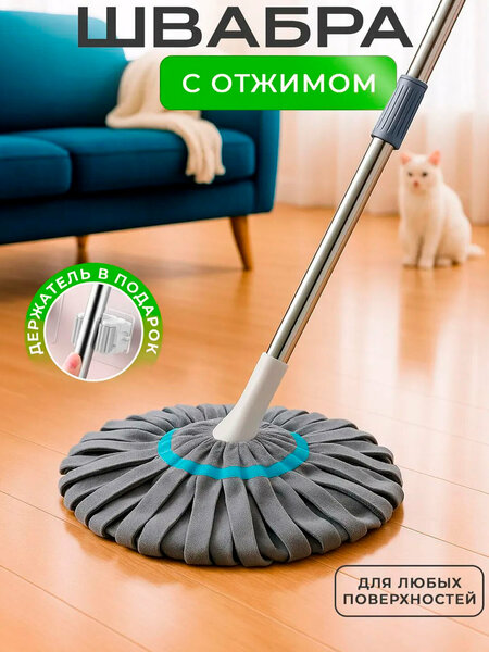 Материал насадки: Микрофибра Особенности: Функция отжима, эргономичная ручка Назначение: Подходит для уборки полов из плитки, ламината, линолеума и других гладких поверхностей Преимущества: Легкая и удобная в использовании, хорошо отжимает, идеально подходит для быстрой и эффективной уборки Эта швабра с удобной системой отжима и насадкой из микрофибры станет идеальным помощником для быстрой и качественной уборки. Микрофибровая насадка отлично впитывает воду и собирает грязь, не оставляя разводов. Ручка швабры имеет эргономичное покрытие для комфортного хвата, а система отжима позволяет легко избавиться от лишней влаги, не пачкая рук.
