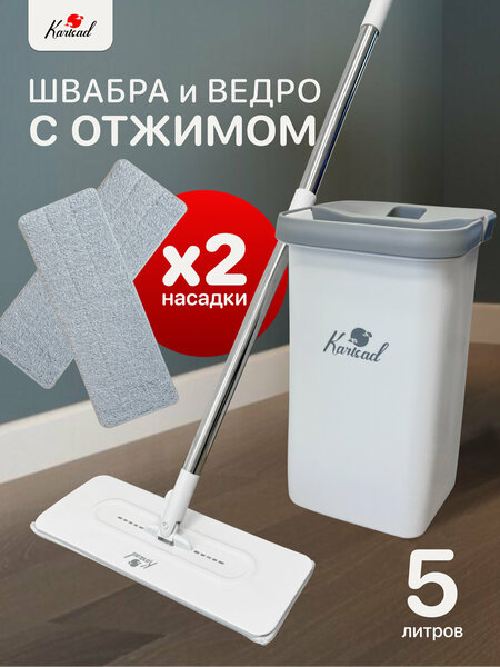 Универсальная и удобная швабра для уборки с системой отжима Karisad– это идеальное решение для современных хозяек, которые любят чистоту, но хотят экономить своё время и силы. В комплект профессиональной швабры входит: моющая швабра с прочной металлической ручкой и плоским пластиковым основанием, ведро на 5 литров из качественного пластика для мытья пола с отжимом, тряпка для мытья пола из профессиональной микрофибры (набор 2 шт.). Благодаря своим не большим размерам ведро удобно хранить и легче использовать. Система для уборки дома разработана таким образом, что вам даже не придётся мочить руки в грязной воде и заниматься полосканием вручную. При мытье пола, пользуясь двухкамерным ведром, в отсеке с водой вы мочите насадку с тряпкой из микрофибры или применяете его для полоскания, а во втором отжимаете. Ведро с механизмом вертикального отжима позволяет выбрать подходящий уровень влажности при мытье различных поверхностей (от 2 до 6 отжимов). Универсальная моющая швабра с составной ручкой длиною до 128 см хорошо подходит для труднодоступных мест. Нижняя насадка швабры снабжена резиновым бампером и водосгоном, что позволит избежать повреждений мебели при контакте с ней и убрать быстро воду.