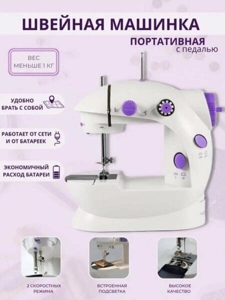 Маленькая швейная машина для домашнего использования с простым управлением. Компактная швейная машина предназначена для несложных задач по ремонту одежды или домашнего текстиля из мягких тканей. Ручная швейная машинка маленькая и не требует специального оборудованного для нее места. После использования машину легко спрятать в ящик или на полку, т. к. она очень компактна. Ручная швейная машинка мини оснащена ножной педалью, функцией намотки нити на шпульку и адаптером от электрической сети. Кроме того, устройство может функционировать при помощи батареек в количестве 4х штук класса АА, поэтому ее удобно брать с собой в поездки. Машинка имеет качественную сборку и весь необходимый функционал обычной швейной машины. Для заботливой хозяйки эта вещь станет незаменимой помощницей в доме.