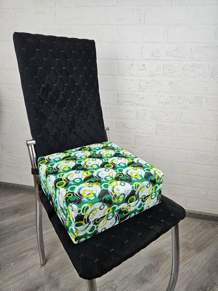 Подушка на стул для приучения ребенка к общему столу. Высота регулируется по мере роста ребенка, либо под определенную высоту стола. Сидушка бустер изготовлена из прочной ткани, имеет ремешки для надежного крепления к стулу. На ремнях есть регуляторы, благодаря которым бустер плотно фиксируется к стулу. Чехол бустера съемный и его можно постирать. Это практично и гигиенично. Бустер достаточно мягкий для сиденья, ребенку будет комфортно на нем. Бустер универсален, его так же можно использовать за рабочим столом, взять с собой театр/кинотеатр/гости
