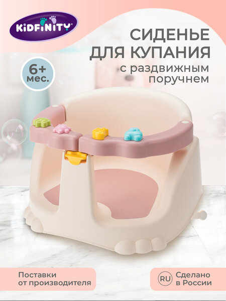 Сиденье для купания - незаменимый аксессуар в уходе за детьми во время водных процедур в ванной. Модель подходит для мытья маленьких мальчиков, девочек в возрасте от 6 месяцев, когда ребенок уже умеет сидеть самостоятельно. Удобная анатомическая форма, размер кресла создают комфорт. Спинка не дает малышу опрокинуться назад. Детали: эргономичная пластмассовая основа, сидушка, перегородка с креплением, разработаны с учетом особенностей анатомии детского тела. Нескользящее сиденье приятно для кожи малютки. Паховый ограничитель и защитный бордюр не разрешат бейби соскользнуть в воду. Раскрывающийся бортик (бампер) даст возможность легко посадить и достать дитя, имеет безопасный замок, кроха не сможет открыть его сам. Сверху поручень украшен вращающимися развивающими игрушками, которые позволят baby весело играть. Развивашки способствуют развитию моторики. Безопасность подтверждается отсутствием острых краев. Есть отметка максимального уровня жидкости, ручка для переноски. Изделие российского производителя высокого качества изготовлено из прочного гипоаллергенного материала, пластмассы без запаха. 4 противоскользящие резиновые присоски ножки надежно фиксируют подставку ко дну ванночки, обеспечивая защиту от скольжения. Крепятся на гладкие поверхности (покрытия). Язычки сбоку помогают быстро открепить их после использования. Красивый, стильный стул станет лучшим практичным подарком на выписку крошки из роддома, день рождения, Защиты детей, Крестины, Новый год, Рождество, без повода для дорогих сына, дочки, внука, внучки, крестницы, крестника, младшего брата, сестры, племянника, племянницы. Может стать настоящим новогодним, рождественским сюрпризом под елку. Родители оценят эстетичный внешний вид, простоту, практичность супер гаджета. Дизайн предмета с декоративными милыми лапками впишется в интерьер дома. Следите за полезными новинками, скидками, акциями, большими распродажами, самым широким ассортиментом полимерных товаров, принадлежностей в наборах, комплектах, в каталоге магазина и оригиналов брендов фирмы.