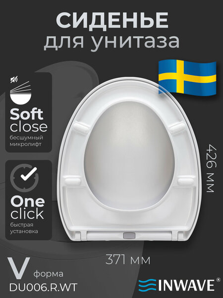 Сиденье для унитаза INWAVE DU006. R. WT – сочетание стиля, комфорта и долговечности INWAVE DU006. R. WT – это высококачественное сиденье для унитаза, разработанное с учетом современных стандартов комфорта и надежности. Ключевые особенности: Материал премиум-класса: изготовлено из прочного дюропласта, устойчивого к царапинам и обесцвечиванию, что обеспечивает долгий срок службы и сохранение первоначального вида. Система Soft Close: механизм плавного закрывания предотвращает резкие удары и шум, обеспечивая тихое и безопасное использование, особенно важно для семей с детьми. Универсальные размеры: габариты 426 × 371 × 40 мм подходят для большинства стандартных унитазов, обеспечивая легкую установку и комфортное использование. Антибактериальное покрытие: поверхность сиденья обладает антибактериальными свойствами, обеспечивая дополнительную гигиену и безопасность. Легкость установки: в комплект входят все необходимые крепления и подробная инструкция, позволяющая установить сиденье без дополнительных инструментов. Технические характеристики: Бренд: INWAVE Модель: DU006. R. WT Материал: Дюропласт Цвет: Белый Габариты: 426 × 371 × 40 мм Расстояние между крепежными отверстиями: 44-184 мм Форма: Круглая Тип крепления: Съемное Вес: 2.3 кг Максимальная нагрузка: 300 кг Система плавного закрывания (Soft Close): Да Антибактериальное покрытие: Да Влагостойкость: Да