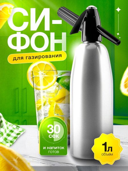 Сифон/Сифон для газирования воды и напитков, 1 л, серебристый
