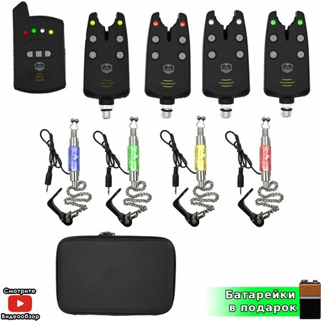 Набор сигнализаторов поклевки Hoxwell HL 24 (4+1) с пейджером. Функции пейджера: Кнопка вкл, выкл, Регулировка громкости - 4 уровня, Регулировка тональности - 4 уровня, Вкл/Выкл режима вибрации, Индивидуальная световая индикация для каждого сигнализатора, Рабочее расстояние до 120 метров, Элемент питания "Крона", входит в комплект поставки. Функции сигнализатора поклевки: Кнопка вкл, выкл, Регулятор тона - 6 уровней, Регулятор чувствительности - 6 уровней, Регулятор громкости - 6 уровней, Режим без звука(вибрация), Дополнительный разъем для свингера, Память установленных настроек (возможность сохранить прежде установленные настройки), Изменение цвета светодиода для определения направления поклевки от берега к берегу, Резиновые подкладки под удилище, Элемент питания "Крона", входит в комплект поставки. Влагозащищенный корпус пейджера и сигнализатора, означает вода не попадает в сигнализаторы в дождливую погоду, при случайном попадании устройства в воду или если уронили в нее, то после замены батарейки, сигнализатор продолжает исправно работать. В комплекте имеется мягкий удобный кейс для хранения и переноски, который защищает лучше пластикового и при этом сам не ломается. Пейджер и сигнализатор имеют: изменение тональности звукового сигнала относительно направления поклевки(от берега или к берегу) и изменение цвета светового индикатора на них и сигнализируют о поклевке еще 20 сек. после ее осуществления. Описание: Электронный сигнализатор поклевки с пейджером — незаменимый набор для ночной ловли карпа и донной рыбалки. Звуковой и световой индикатор моментально реагируют на сигналы клева, независимо от вида рыбной ловли: карповая или фидерная. Сигнализатор контролирует 2, 3 , 4 , 5 , 6 рыболовные удочки одновременно. Интересует вас донка или фидер – неважно. У нас есть любые рыбацкие снасти.