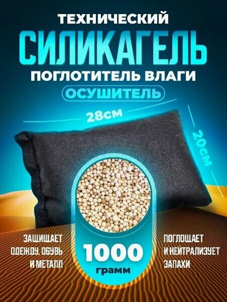 Силикагель гранулированный 1000 грамм - технический абсорбент, поглотитель влаги, поглотитель запаха, средство для уменьшения влаги. Эффективно при транспортировке, упаковке, фасовке и хранении вещей, имеющих повышенную влажность. Рекомендуется и для поставщиков: силикагель - это защита от влаги, уменьшит вероятность отмокания и отсыревания товара, упаковки и комплектующих на пути до клиента. Отлично подходит для хранения и домашнего использования. Эффективно как сушилка для обуви, поглотитель запаха для обуви, уменьшает влагу при хранении одежды. Предотвращает запотевание стекол в автомобиле, при размещении вблизи стекла. Используйте силикагель, как осушитель воздуха для поглощения влаги при хранении сезонных вещей. Силикагель зафасован в черный воздухопроницаемый мешочек из нетканного материала. Рекомендованное количество силикагеля рассчитывается из соотношения 1 кг на 1 м3.
