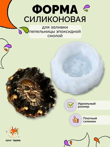 С помощью этих силиконовых форм вы легко сделаете оригинальное изделие в виде черепа из эпоксидной смолы. Внутрь перед заливкой вы можете положить высушенные цветы, декоративные элементы и многое другое. Перламутровые пигменты также помогут придать вашим фигуркам уникальность. Благодаря тому, что форма из мягкого силикона, вы легко вытащите готовое изделие. Используйте красители из нашего магазина. А если добавите люминофор, ваши работы будут светится в темноте. В связи с тем, что на молд могла попасть производственная пыль, перед применением промойте водой и дайте высохнуть. Форма выдерживает от -40 до +220 С. Перед использованием молд желательно вымыть в теплой мыльной воде и высушить. В работе с силиконовыми формами не рекомендуется использовать царапающие абразивные средства и колюще-режущие предметы. Также мы не рекомендуем смешивать компоненты прямо в молде, чтобы не повредить глянцевую поверхность. После использования молд необходимо помыть теплой водой с добавлением мыльного раствора, просушить и убрать в пакет/файл. Еще больше товаров для хобби и творчества Вы можете найти в нашем магазине "Хочу творю".