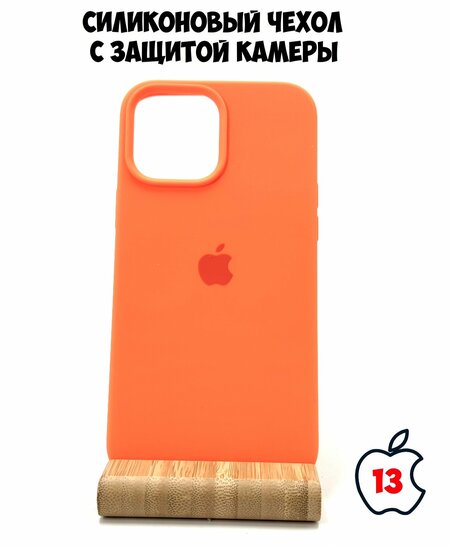 Силиконовый чехол для iPhone 13 с защитой камеры оранжевый