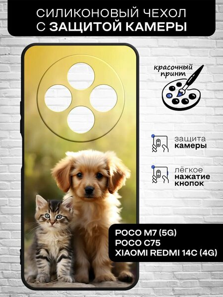 Защитный чехол для Redmi 14C (4G) от Xiaomi и Poco C75, Poco M7 (5G) – это идеальное решение для тех, кто ценит не только стиль, но и безопасность своего смартфона. Изготовленный из высококачественного силиконового материала, этот чехол предлагает надежную защиту от ударов и царапин, сохраняя при этом элегантный внешний вид вашего устройства. Уникальный декоративный принт на чехле добавит индивидуальности вашему телефону, делая его заметным среди других. Благодаря отсутствию застежки, надевание и снимание чехла становится еще проще и удобнее. Особая защита выступающей камеры гарантирует, что объектив вашего смартфона останется чистым и невредимым. Эксклюзивный дизайн и качественное исполнение делают этот чехол не только защитным аксессуаром, но и модным аксессуаром для вашего Redmi 14C (4G) или Poco C81
