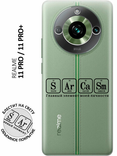 Силиконовый чехол на Realme 11 Pro, 11 Pro+, Рилми 11 Про, 11 Про + с 3D принтом "Sarcasm Element" прозрачный