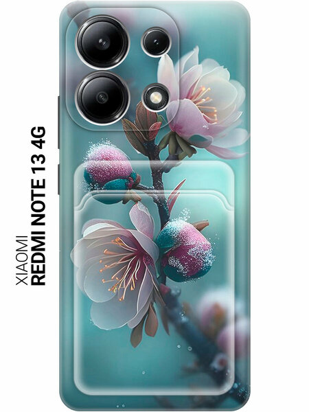 Силиконовый чехол на Xiaomi Redmi Note 13 4G с принтом "Распускающиеся бутоны" с карманом для карты прозрачный