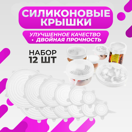 Силиконовые растягивающиеся крышки для посуды, набор 12 шт (прозрачные)