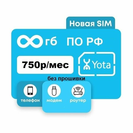 Сим карта йота yota безлимитный интернет по РФ и 750руб/мес для модемов