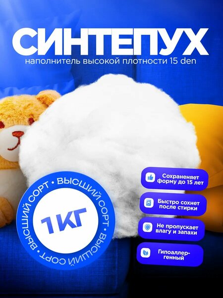 Синтетический пух подходит для подушек, игрушек и мебели. Средняя жесткость 15Den, 1 сорт