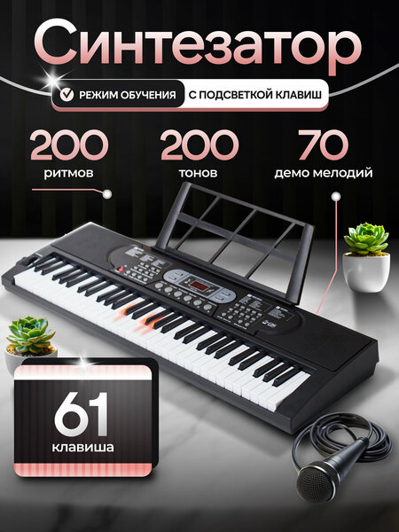 Обратите внимание! Стойка В комплект НЕ входит! Микрофон и usb кабель с адаптером расположены в специальном отсеке бокового защитного блока (из пенопласта). Этот полупрофессиональный музыкальный синтезатор идеально подходит для обучения и творчества как начинающих, так и взрослых музыкантов. Устройство оснащено 61 клавишей, что позволяет создавать разнообразные мелодии и аккорды, а гибкие возможности настройки обеспечивают широкий спектр звучания. Электронное пианино с подсветкой клавиш удобно в использовании, особенно для тех, кто только начинает осваивать азы игры на инструменте. Обучающее программное обеспечение помогает быстро адаптироваться к особенностям работы с синтезатором. Благодаря встроенному микрофону можно записывать свои идеи или выступления в режиме реального времени. Клавиши имеют комфортный отклик, что делает процесс игры более приятным и естественным. Разнообразие тембров и эффектов позволяет экспериментировать со звуками, создавая уникальные композиции. Это идеальный инструмент для изучения основ фортепиано, а также для развития творческих навыков. Управление функциями синтезатора интуитивно понятное, что облегчает его освоение. Модель предназначена как для учебных целей, так и для создания полноценной музыки в домашних условиях или на сцене. Программируемые функции открывают новые горизонты для самовыражения. С таким инструментом можно не только обучаться игре на клавишах, но и погружаться в мир музыкальной импровизации. Это отличный выбор для всех, кто хочет развивать свои музыкальные способности и получать удовольствие от процесса создания музыки.