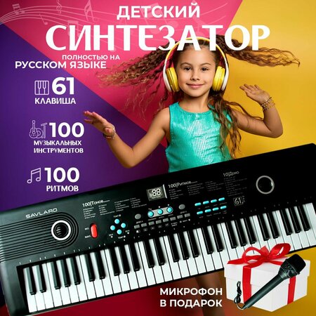 Электронный детский синтезатор с 61 клавишей позволит проявить свои творческие возможности детям, подросткам и взрослым. Фортепиано для детей обладает большим функционалом - сюда относится выбор инструментов, аудио композиций, хорошее качество звучания записанных песен, удобство управления. Имитирует звучание 100 различных музыкальных инструментов, имеет 100 ритмов звучания и 10 демо-песен. Звучание приближено к звукам профессионального цифрового пианино. При помощи синтезатора для начинающих маленький ребенок начинает знакомиться с первыми песнями для малышей, учится слушать музыку, так же он будет интересен для взрослых, позволит интересно провести время в кругу семьи. При помощи игрушечного микрофона песенки громко прозвучат в вашем доме. Игрушка прививает первые навыки усидчивости, развивает моторику рук, происходит обучение нотам, развивается слух. Питание осуществляется от 4 батареек ААА либо от сети, шнур в комплекте, адаптер в набор не входит.