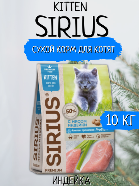 Сухой корм для котят Sirius с индейкой - это высококачественный продукт премиум-класса, разработанный специально для котят до одного года. Основной ингредиент корма - мясо индейки, что делает его не только вкусным, но и полезным для здоровья вашего питомца. Корм содержит 14% мяса индейки, что обеспечивает котенка необходимыми белками и аминокислотами. Корм содержит все необходимые витамины и минералы, включая витамины А, D3, Е, В1, В2, В3, В4, В5, В6, В9, В12, биотин, а также железо, цинк, марганец, медь, йод и селен. Корм не содержит искусственных красителей, ароматизаторов и ГМО, что делает его безопасным для здоровья вашего котенка. Корм Sirius с индейкой подходит для всех пород кошек, включая беременных и кормящих, склонных к аллергии, с плохим аппетитом, проблемами кожи и суставов, а также для кошек с чувствительным пищеварением. Корм упакован в пакет весом 10 кг, что обеспечивает длительное использование. Хранить корм рекомендуется в сухом прохладном месте, беречь от солнечных лучей и влаги. Выбирая сухой корм для котят Sirius с индейкой, вы обеспечиваете своему питомцу здоровое и сбалансированное питание, что способствует его активному росту и развитию.