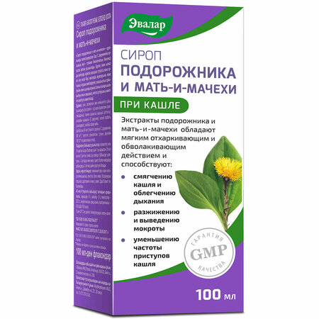 Сироп из подорожника и мать-и-мачехи рекомендуется при сухом и влажном кашле: